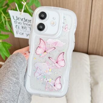 For iPhone 12 Wave Edge Butterfly TPU Hybrid PC Phone Case(Purple)