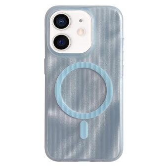 For iPhone 12 Striped Skin Feel Magnetic Magsafe Phone Case(Blue)