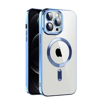 For iPhone 12 Pro CD Texture Plating TPU MagSafe Phone Case with Lens Film(Sierra Blue)