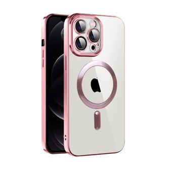 For iPhone 12 Pro CD Texture Plating TPU MagSafe Phone Case with Lens Film(Pink)