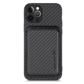 For iPhone 12 Pro Carbon Fiber Magnetic Card Bag Phone Case(Black)