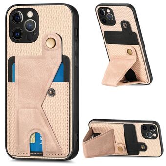 For iPhone 12 Pro Carbon Fiber Wallet Flip Card K-shaped Holder Phone Case(Khaki)