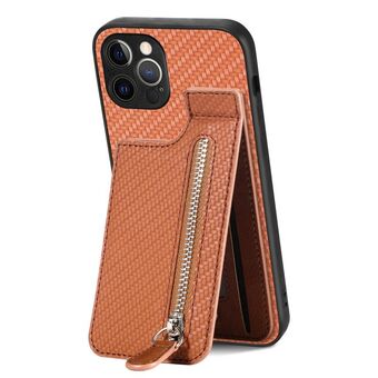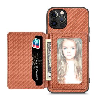 For iPhone 12 Pro Carbon Fiber Magnetic Card Bag Phone Case(Brown)