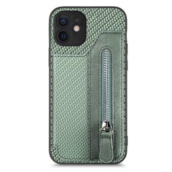For iPhone 12 Carbon Fiber Magnetic Card Bag Phone Case(Green)