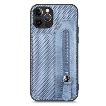 For iPhone 12 Pro Carbon Fiber Horizontal Flip Zipper Wallet Phone Case(Blue)