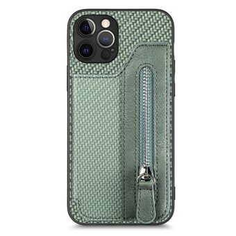 For iPhone 12 Pro Carbon Fiber Horizontal Flip Zipper Wallet Phone Case(Green)