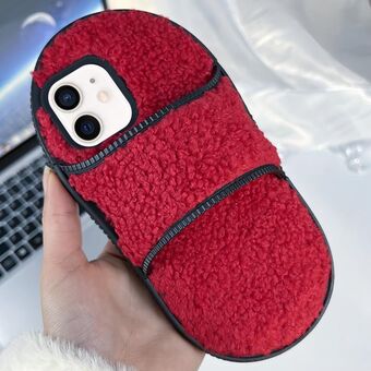 For iPhone 12 / 12 Pro Creative Plush Slipper Design TPU Phone Case(Red)