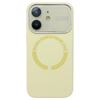 For iPhone 12 Large Window Acrylic Glass Lens MagSafe Silicone Phone Case(Antique White)