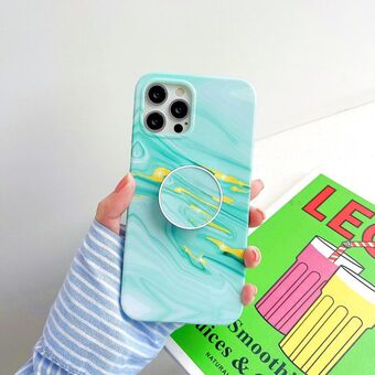 Θήκη για iPhone 12 / 12 Pro από παχύτερο TPU με γυαλιστερό σχέδιο μαρμάρου και πτυσσόμενη βάση (Λευκό)