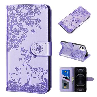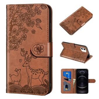 Θήκη για iPhone 12 / 12 Pro με ανάγλυφο σχέδιο ελαφιού Sika, οριζόντια, από δερματίνη PU με βάση στήριξης & θήκη για κάρτες & πορτοφόλι & κορνίζα φωτογραφιών (Κόκκινο)