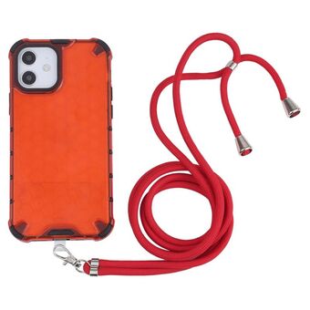 Θήκη για iPhone 12 / 12 Pro ανθεκτική στις κρούσεις, από PC + TPU με κυψελοειδές σχέδιο και λουρί λαιμού (Κόκκινη)