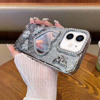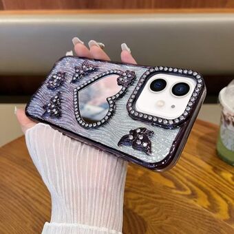 Θήκη τηλεφώνου για iPhone 12 σε σχήμα καρδιάς, με καθρέφτη και λάμψη διαμαντιών (Μπλε)