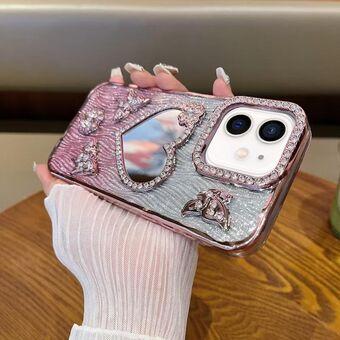 Θήκη τηλεφώνου για iPhone 12 Pro σε σχήμα καρδιάς, με καθρέφτη και λάμψη διαμαντιών (Χρυσό)