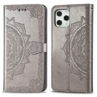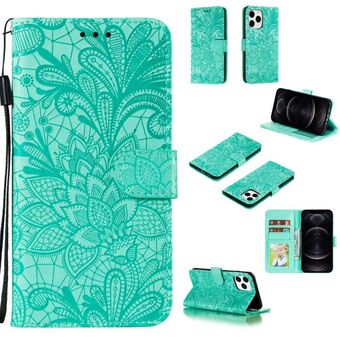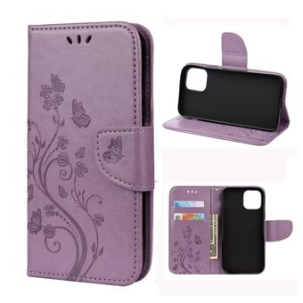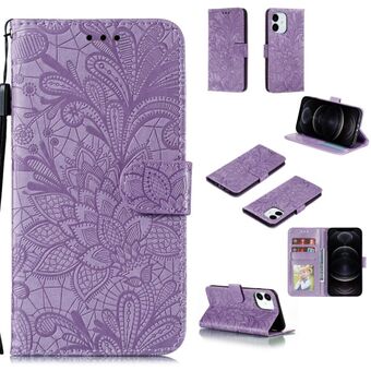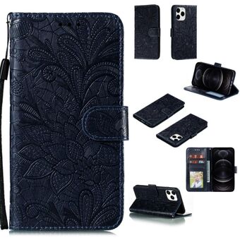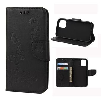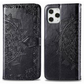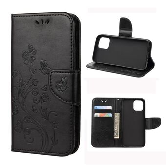Θήκη οριζόντιας αναδίπλωσης από δέρμα για iPhone 12 / 12 Pro με vintage ανάγλυφο σχέδιο λουλουδιών και πεταλούδας, με θήκη για κάρτες, βάση και πορτοφόλι και λουρί (Μαύρο)