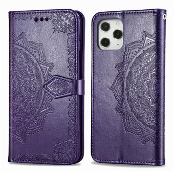 Θήκη δέρματος οριζόντιας αναδίπλωσης για iPhone 12 / 12 Pro με σχέδιο ανάγλυφου μανταλά, θήκη για κάρτες, πορτοφόλι και λουρί (Μαύρο)