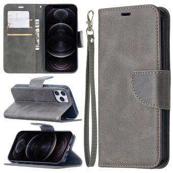Θήκη για iPhone 12 / 12 Pro, Ρετρό Υφή Δέρματος Αμνού, Μονόχρωμη, Οριζόντια, Flip από Δερματίνη PU, με Θήκη & Θήκες Καρτών & Πορτοφόλι & Λουρί (Μαύρο)
