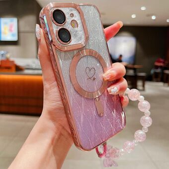 For iPhone 12 Loves Leaves Gradient Glitter Bracelets Carbon Fiber Magsafe TPU Phone Case(Pink)