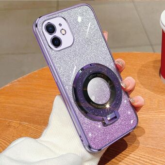 For iPhone 12 Plated Gradient Glitter Round Holder TPU Phone Case(Purple)