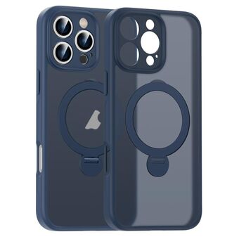 For iPhone 12 Matte Texture 360 Degree Rotary Tone Holder MagSafe Phone Case(Dark Blue)