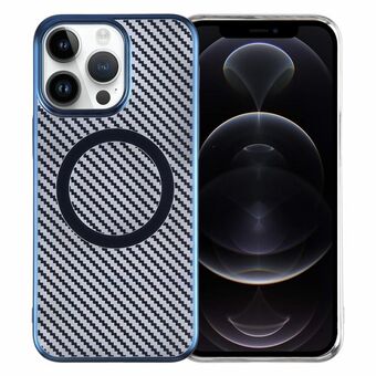 For iPhone 12 6D Plated Carbon Fiber Clear Magsafe PC Phone Case(Dream Blue)