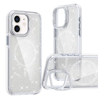 For iPhone 12 Two-color Glitter Powder Lens Holder Magsafe Phone Case(White)