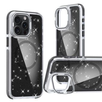 For iPhone 12 Pro Two-color Glitter Powder Lens Holder Magsafe Phone Case(Black)