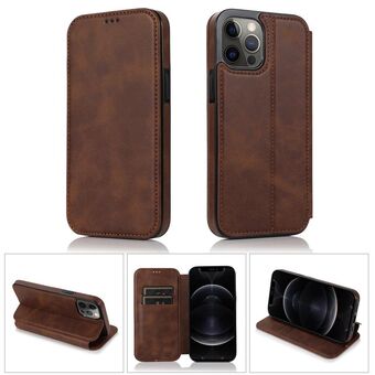 For iPhone 12 Retro Skin-feel Ring Multi-card Wallet Phone Case(Brown)