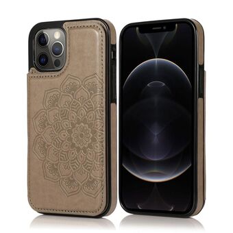 For iPhone 12 / 12 Pro Double Buckle Mandala Pattern PU+TPU Protective Case with Card Slots & Holder & Photo Frame(Grey)