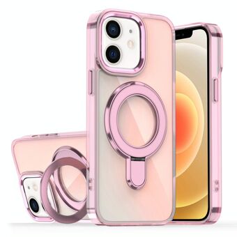 For iPhone 12 / 12 Pro Plating Gradient Discolor MagSafe Holder Phone Case(Clear Pink)