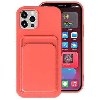 For iPhone 12 TPU + Flannel Lining Shockproof Case with Card Slots(Orange Pink)