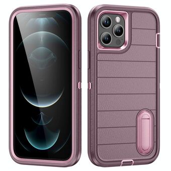 For iPhone 12 Pro Defender Gen2 Rugged PC + Silicone Phone Case with Holder(Purple+Light Pink)
