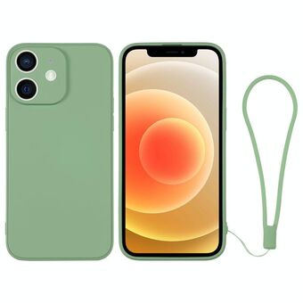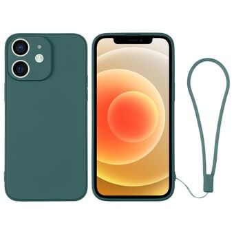 For iPhone 12 Silicone Phone Case with Wrist Strap(Matcha Green)