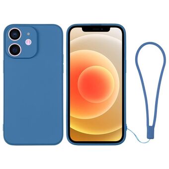 For iPhone 12 Silicone Phone Case with Wrist Strap(Blue)