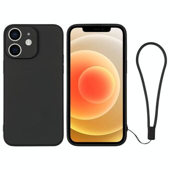 For iPhone 12 Silicone Phone Case with Wrist Strap(Black)