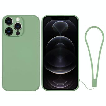 For iPhone 12 Pro Silicone Phone Case with Wrist Strap(Matcha Green)