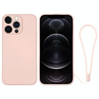 For iPhone 12 Silicone Phone Case with Wrist Strap(Pink)