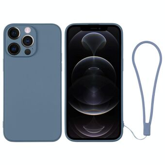 For iPhone 12 Pro Silicone Phone Case with Wrist Strap(Blue)