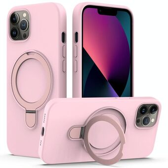 For iPhone 12 Liquid Silicone MagSafe Magnetic Phone Case with Ring Holder(Grey Pink)