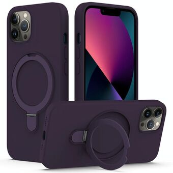 For iPhone 12 Liquid Silicone MagSafe Magnetic Phone Case with Ring Holder(Purple)