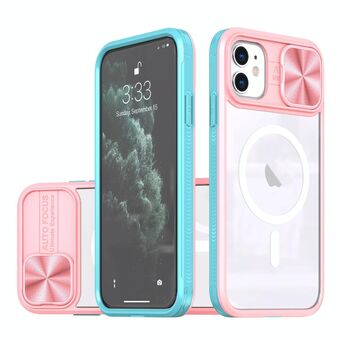 For iPhone 12 Clear Acrylic + PC + TPU MagSafe Lens Sliding Cover Full Coverage Phone Case(Pink+Cyan)