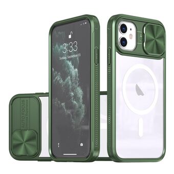 For iPhone 12 Clear Acrylic + PC + TPU MagSafe Lens Sliding Cover Full Coverage Phone Case(Olive Green)