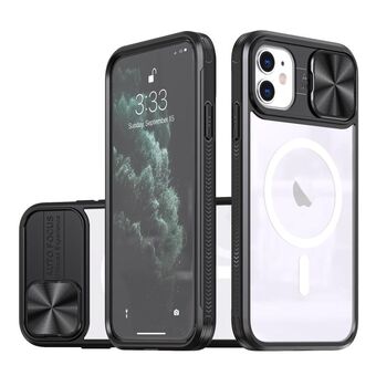 For iPhone 12 Clear Acrylic + PC + TPU MagSafe Lens Sliding Cover Full Coverage Phone Case(Black)