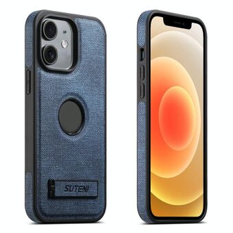 For iPhone 12 Suteni G2 Holder Denim Leather Back MagSafe Phone Case(Blue) (Suteni)