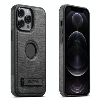 For iPhone 12 Pro Suteni G2 Holder Denim Leather Back MagSafe Phone Case(Black) (Suteni)