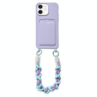 For iPhone 12 Dopamine Card Slot Phone Case with Lanyard(Purple)
