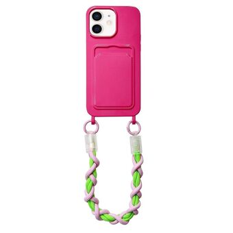 For iPhone 12 Dopamine Card Slot Phone Case with Lanyard(Rose Red)