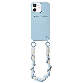 For iPhone 12 Dopamine Card Slot Phone Case with Lanyard(Blue)