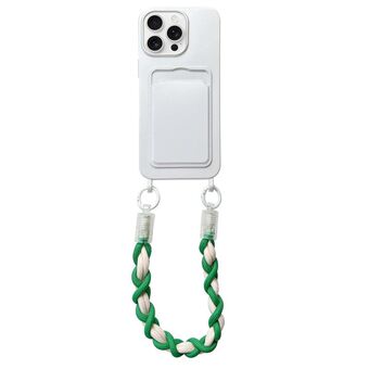 For iPhone 12 Dopamine Card Slot Phone Case with Lanyard(White)