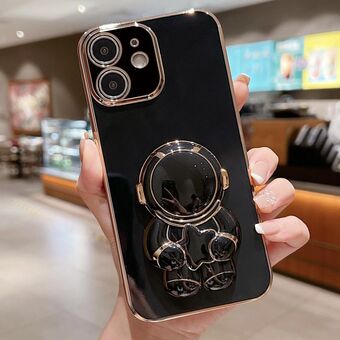 For iPhone 12 Embrace Stars Electroplating Astronaut Holder Phone Case(Black)