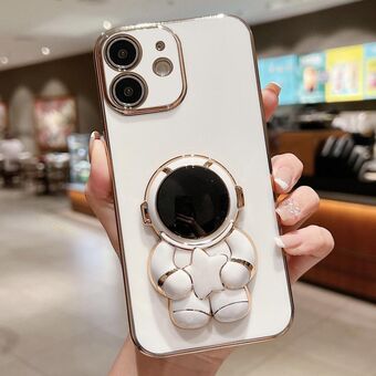 For iPhone 12 Embrace Stars Electroplating Astronaut Holder Phone Case(White)